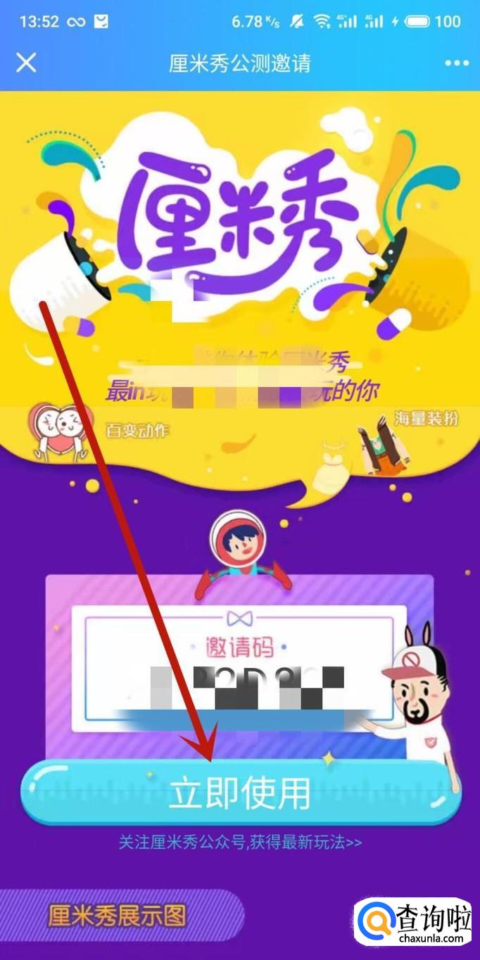 进入好友分享的厘米秀邀请链接,点击“立即使用”即可开启,如图所示。