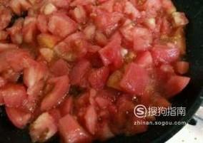 准备一个锅,将番茄切成小块放入锅中,开小火慢煎。