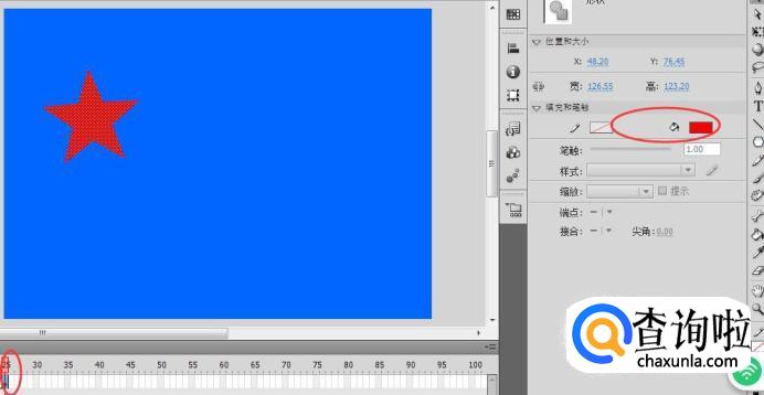 在第25帧位置,更改星星的填充颜色为红色。