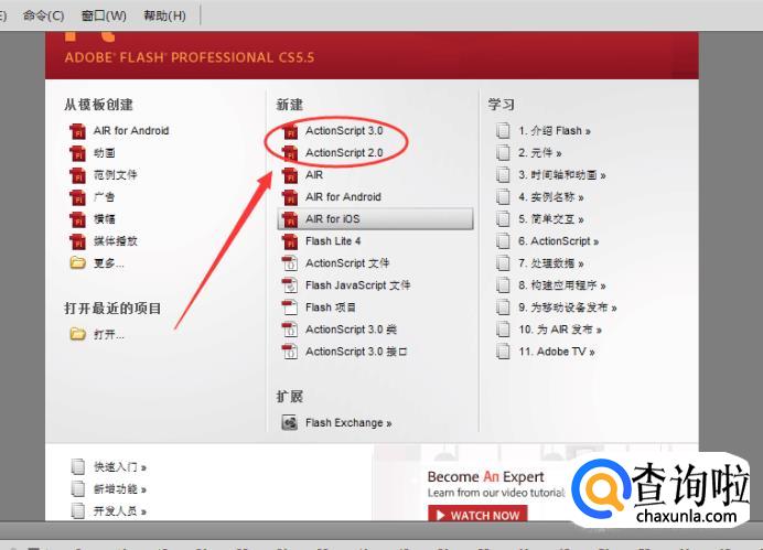 然后再点击ActionScript 3.0或ActionScript 2.0,一般来说是创建ActionScript3.0文档。