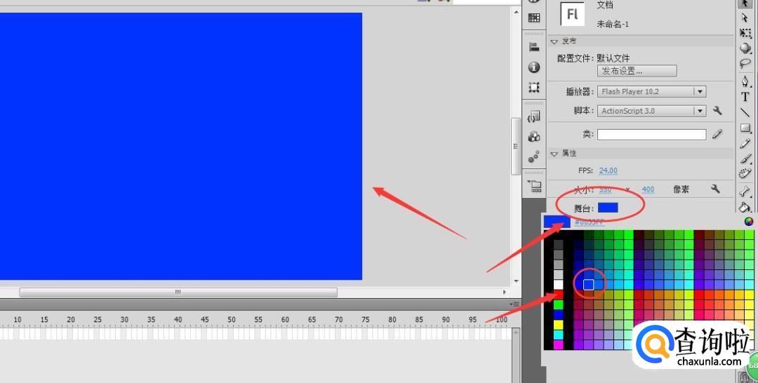 接着把舞台颜色选择为蓝色,就点击蓝色方框即可。