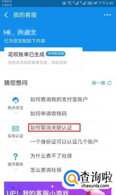 弹出的界面,我们点击如何取消关联认证;