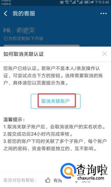 弹出的界面,我们点击取消关联账户;