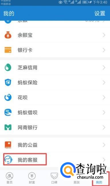 首先,我们打开我们的手机,然后我们点击手机上面的支付宝,进入支付宝后,我们点击我的,然后我们点击我的客服;