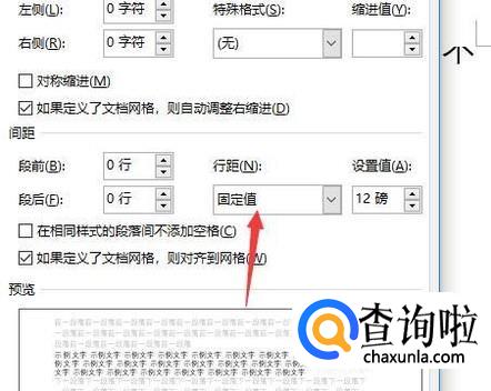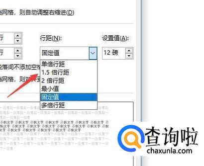 点击进入以后,可以在行距的位置看到有一个固定值,如果这样设置了以后,如果变换文字大小时就容易出现文字只看到一半的情况。