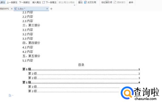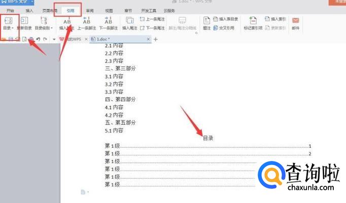 然后切换到【引用】选项卡,在下方点击【目录】,即可在指定的位置生成超链接,如下图所示: