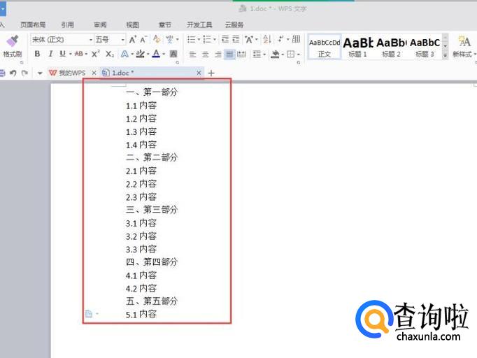 打开一张Word文档,然后输入一些内容,假设为论文,有标题和小标题,如下图所示: