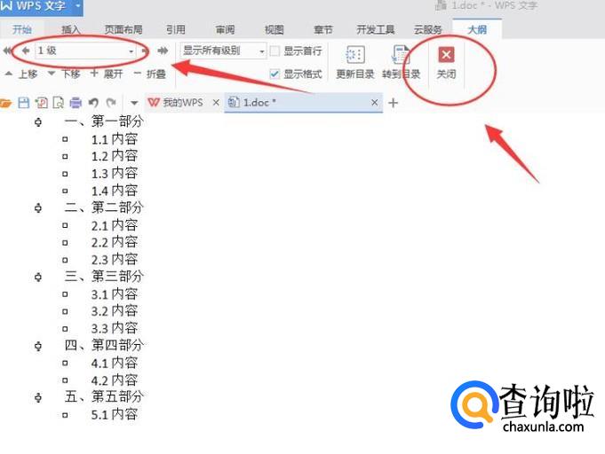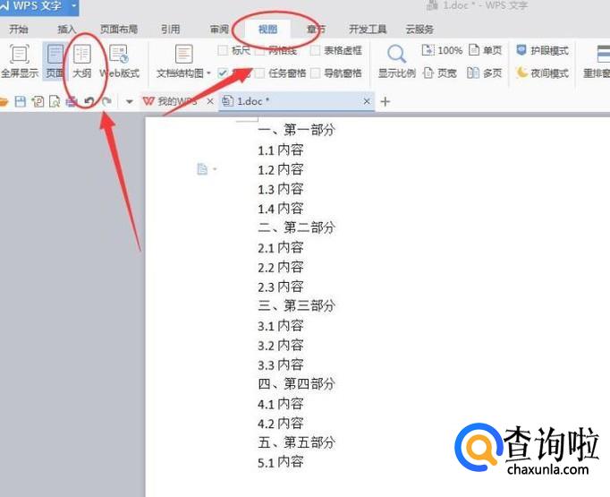 然后在上方找到【视图】选项卡,切换到【大纲】,如下图所示: