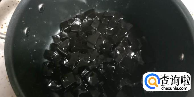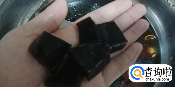 用清水把冷却好的凉粉给清洗干净,接下来就能用刀片切成一小块一小块放进赶紧的锅里。