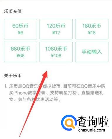 看到快捷菜单之后,选择“乐币充值”,进入下一页面,如图所示。