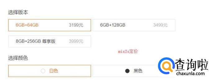 然后再来看价格,6+64版本的,小米8定价2699元,mix2s定价3299元。其他版本mix2s同样要高于8的定价,相差大概600元。
