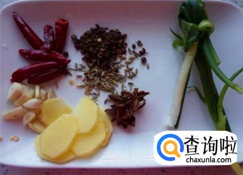 准备一些葱姜蒜,葱切成段,姜切片或者丝,大蒜拍一拍就行了,准备一些八角和红辣椒待用。