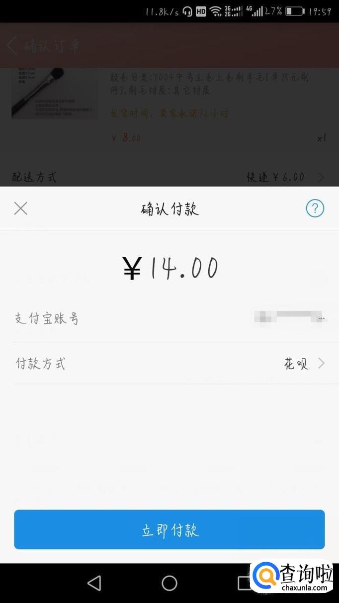 在淘宝上购买商品时,如果可以使用花呗付款的话,会默认给你选定花呗付款。