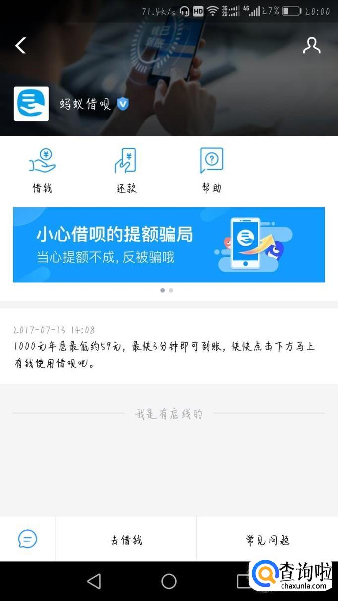 在支付宝搜索栏中搜索“蚂蚁借呗”,就可以进去相应界面。然后你可以选择借钱。