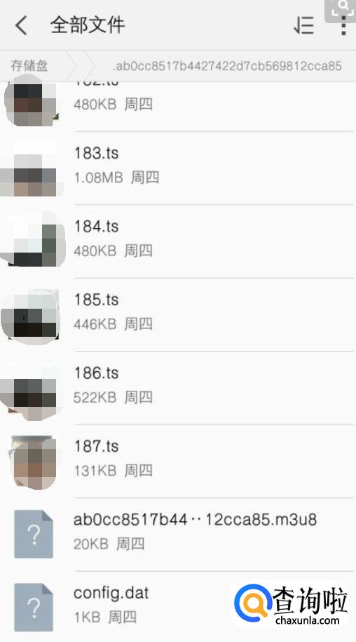 接着我们点击“存储”选项,就可以找到视频下载的目录了,把里面的m3u8文件全部删除,或者隐藏。
