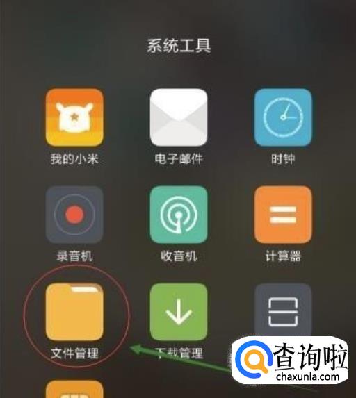 我们先在手机上打开“文件管理”,然后点击菜单栏中的“手机”。