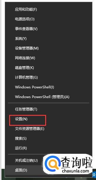 首先右键点击电脑屏幕左下角开始菜单,选择设置。