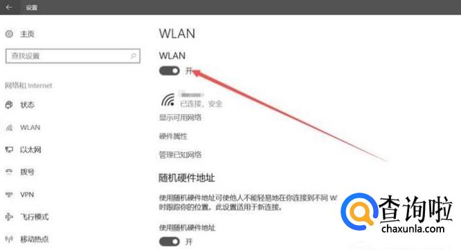 左边点击WLAN,右边将开关打开即可。