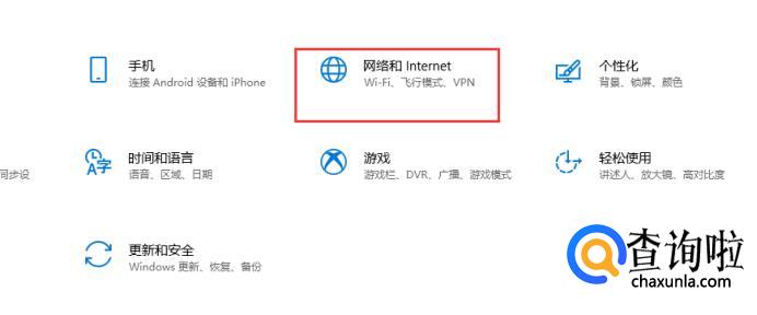 然后在页面里选择网络和Internet。