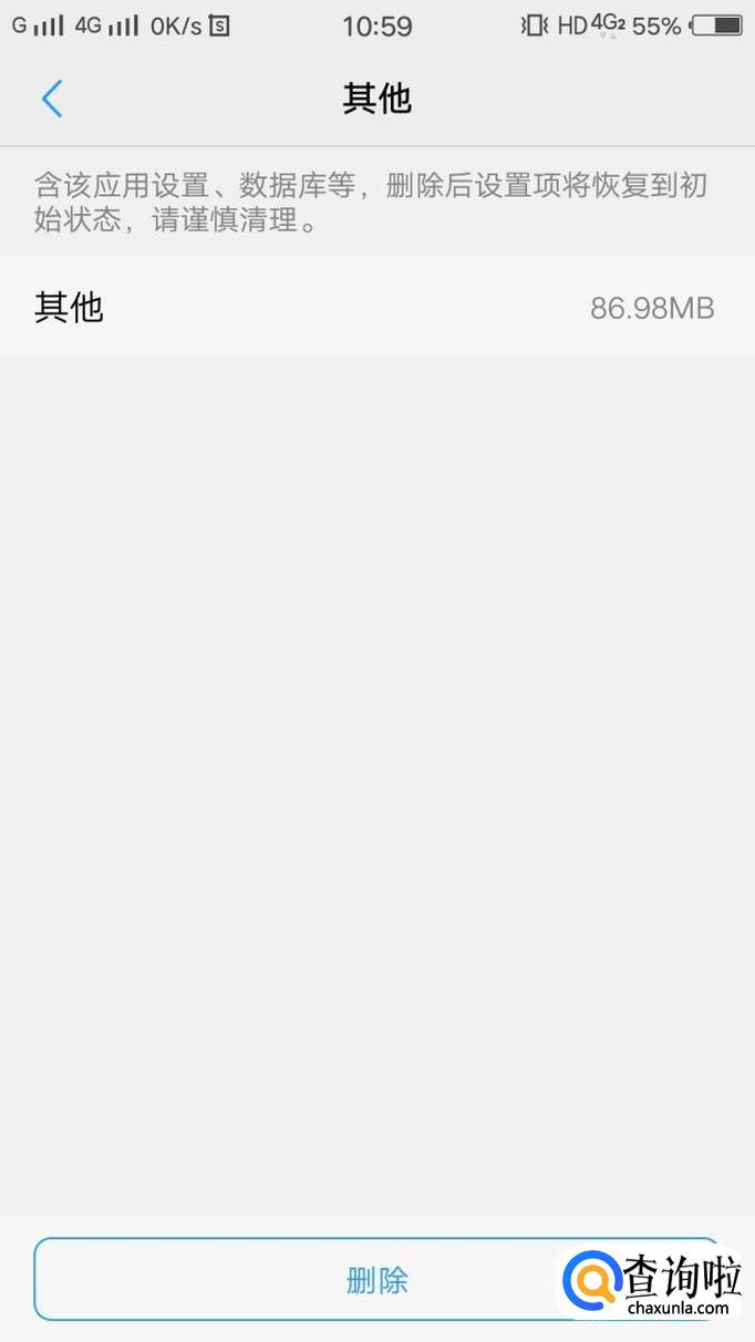 点击其他的选项,进入到如图所示界面,在页面下面可看到删除,点击即可删除缓存数据