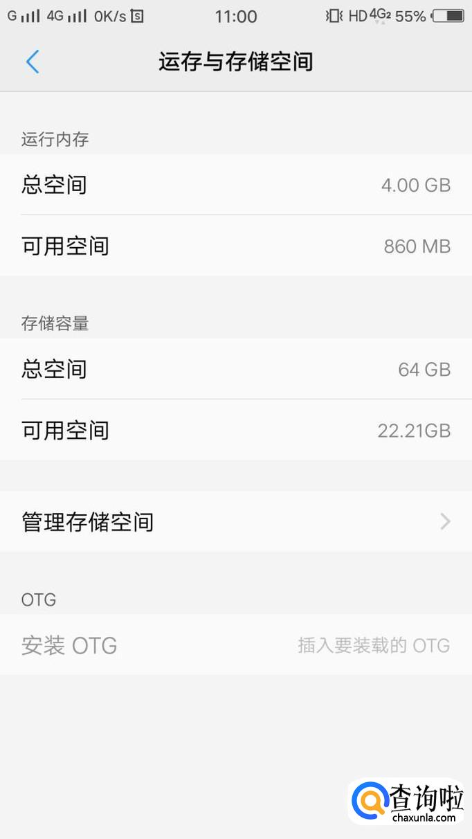 打开运行与存储空间界面,可以看到管理存储空间,如图所示