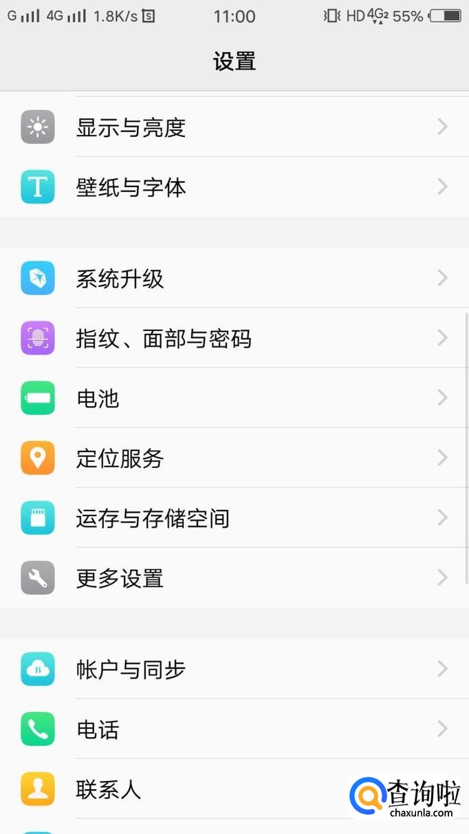 首先打开设置图标,在设置界面找到运行与存储空间的选项,如图所示