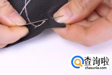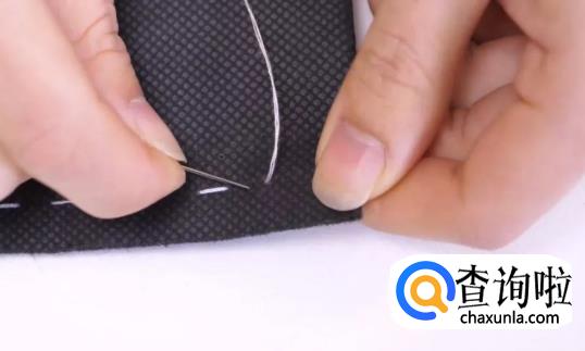 我们缝好最后一针后,倒退一个较小的针距入针。