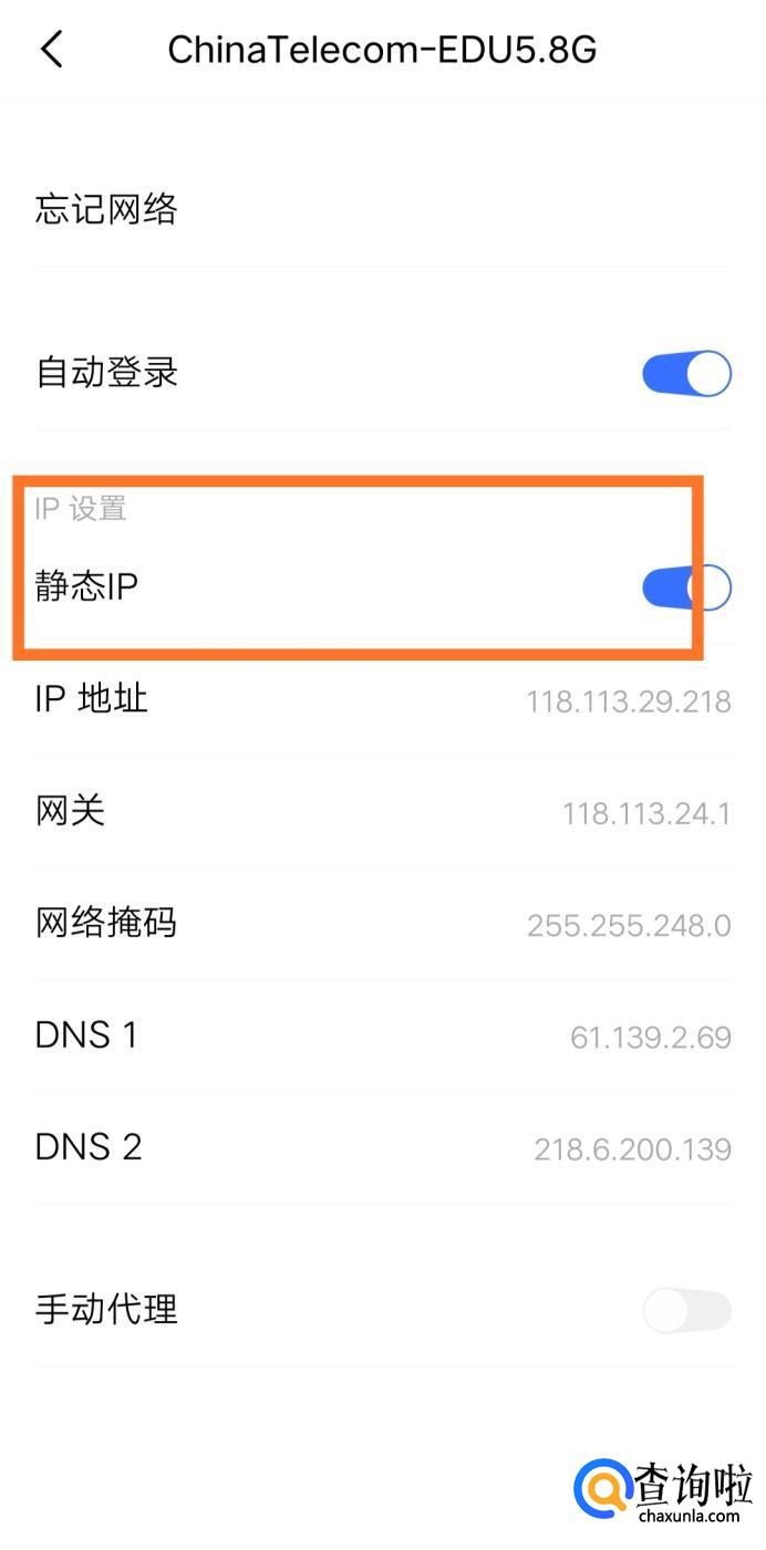 在高级设置勾选“使用静态IP”,如图所示。