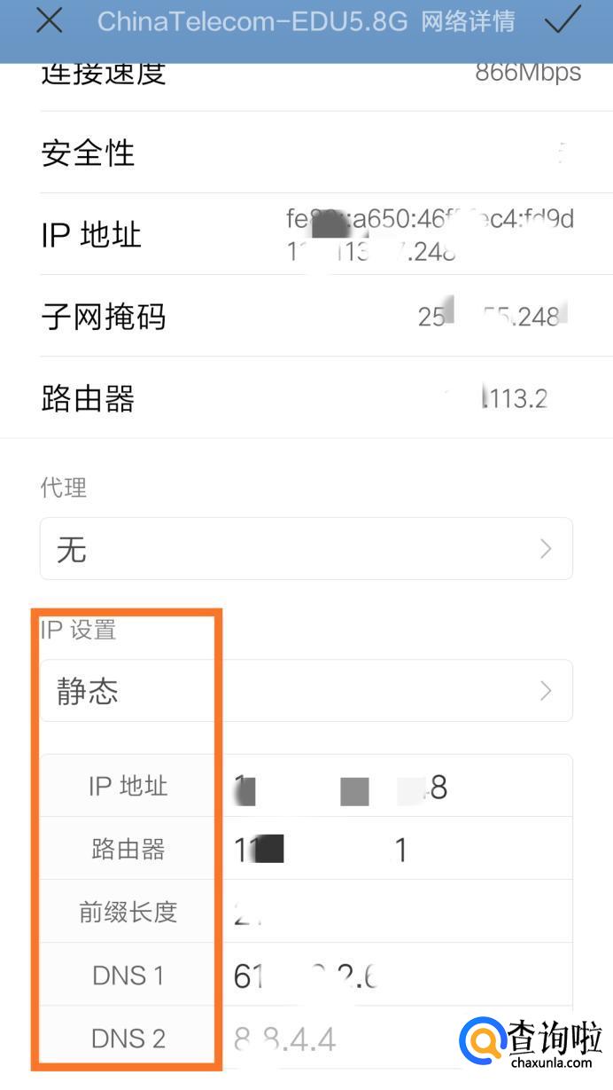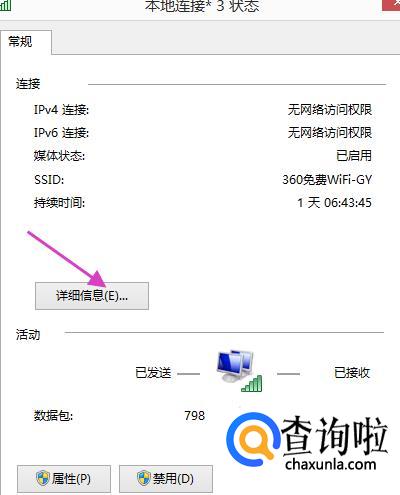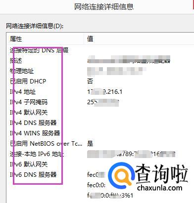 点击详细信息后会出现下图所示页面,并找到IP、网关、DNS。