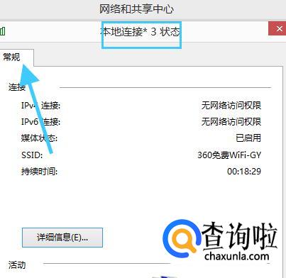 点击电脑右下角的”打开网络和共享中心“,再点击”本地连接“,进入本地连接的常规信息界面。