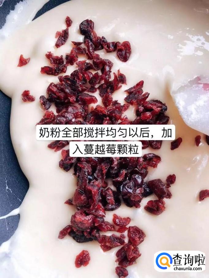 食材:面粉,奶粉,泡打粉,蔓越莓,棉花糖。