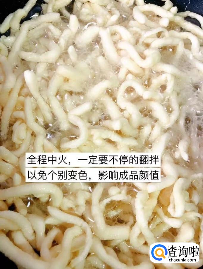然后把炸好的面条捞出控油放凉,如下图所示。