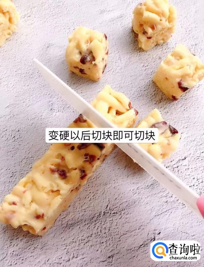 接着把处理好的沙琪玛倒入模具中整好形,放到阴凉的地方晾30分钟左右,如下图所示。