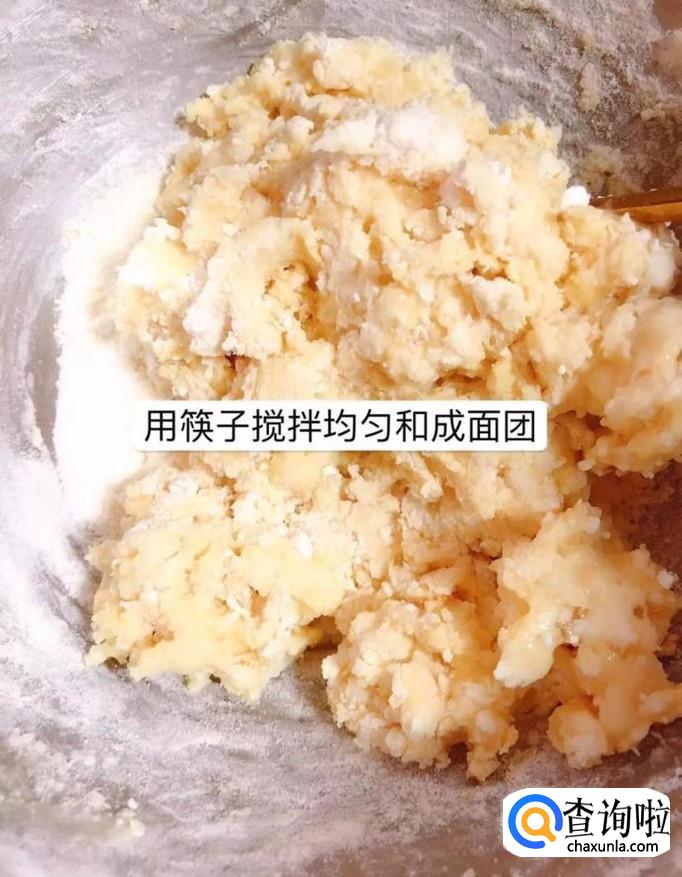 然后往盆中加入适量的清水,和成面团,如下图所示。