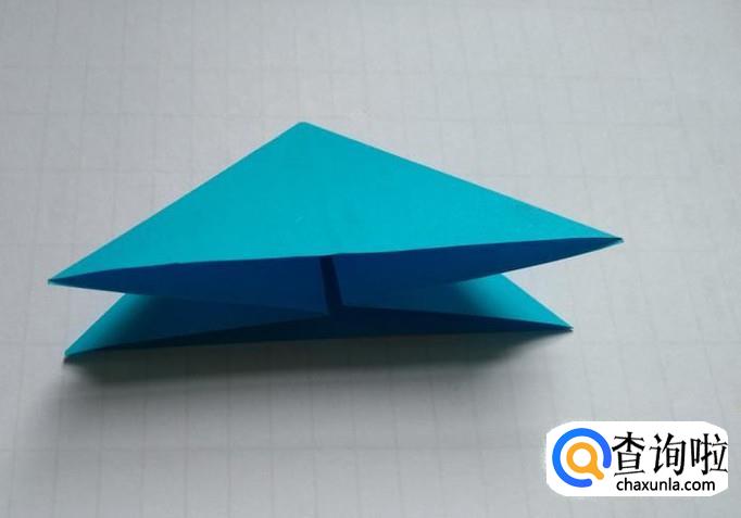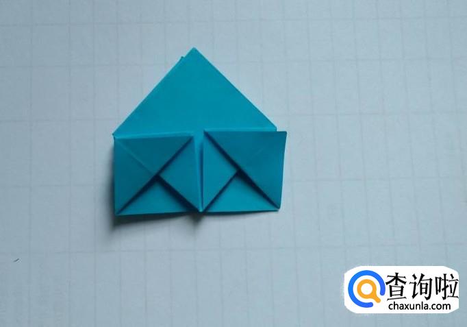 然后将折纸上层的三角形的两面分别向上折(第一图),然后把下层同样也折向中心线(第二图)。