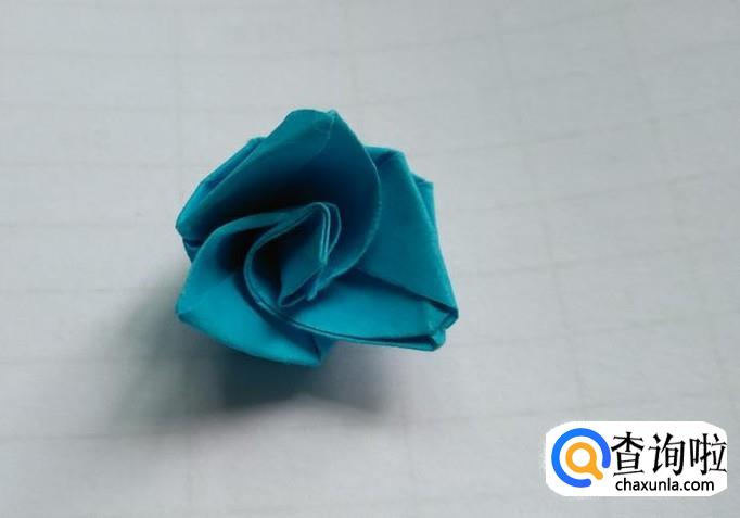 翻过折纸,用左手捏住底部,然后用右手捏住折纸上面的尖角旋转,玫瑰花就折好了。