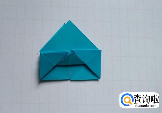 将折上去的三角形沿中缝打开并向下压折成正方形(第一图),然后把正方形的上层向上折(第二图),再把中间的小三角也折上去(第三图)。