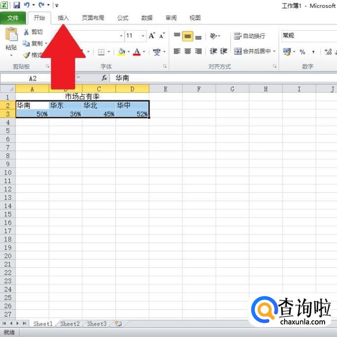 我们首先选中数据区域,然后点击“插入”选项卡。