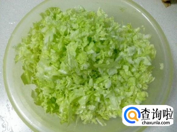 首先将食材清洗干净,将白菜和木耳切碎备用