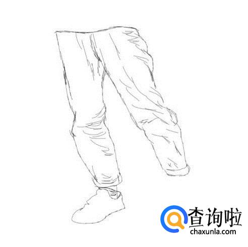 最后在人物的鞋子上画出鞋子的鞋带及其他细节,这样我们的速写姿势腿就画好了,如图所示: