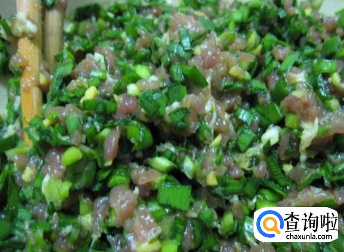 最后倒入韭菜丁,随包随拌,不能一下都拌,那样韭菜的水分容易出来。