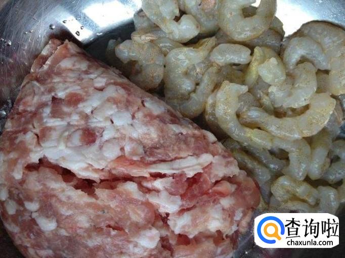 猪肉,虾肉,韭菜,葱姜水,胡椒粉,生抽,盐。