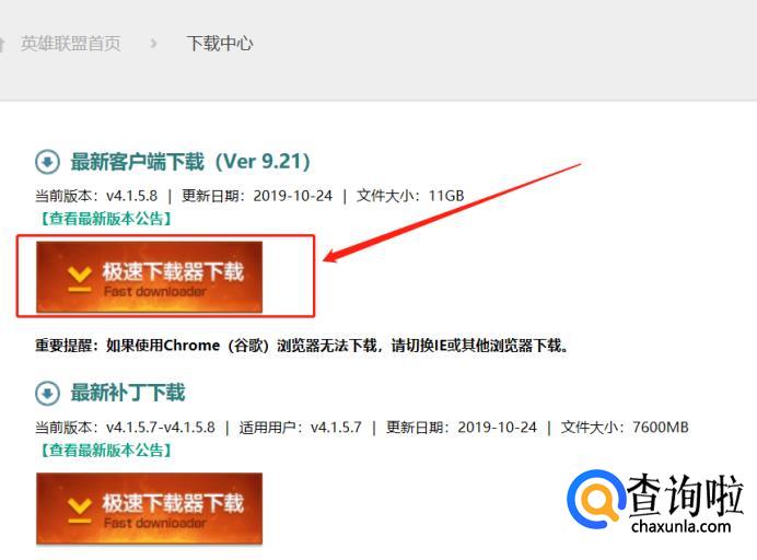 打开浏览器,搜索英雄联盟官网: