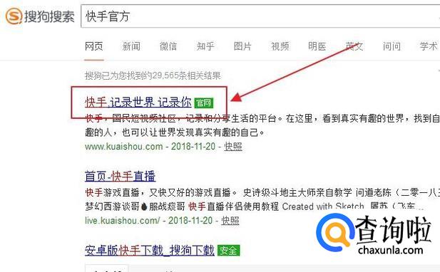 首先打开搜狗浏览器,输入快手官方,并点击搜索。