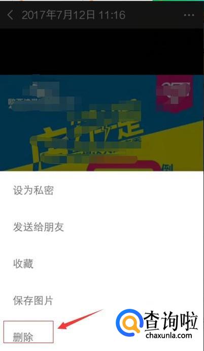 最后点击删除即可,这样之前发布朋友圈这条信息就删除成功了;
