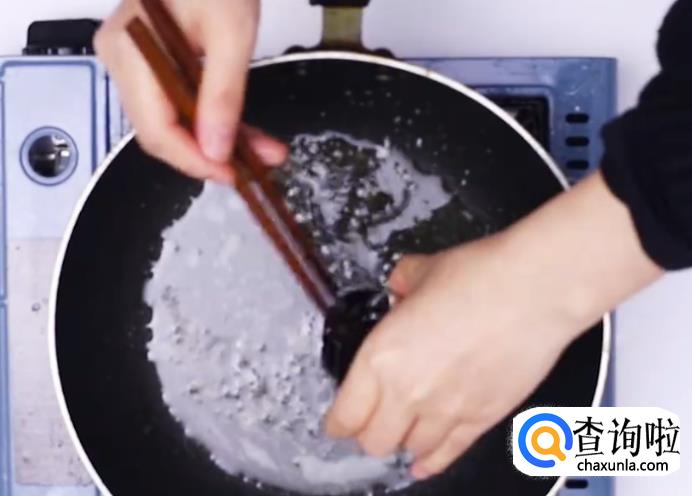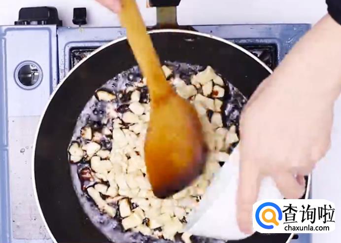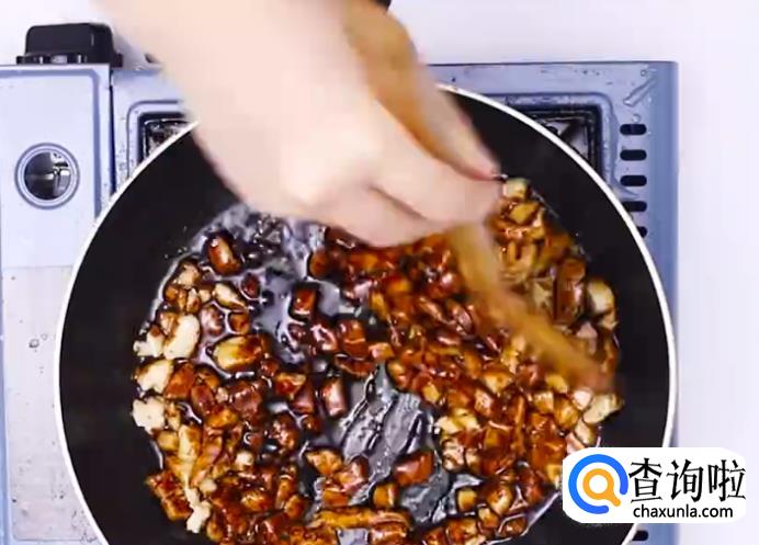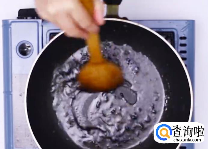 少量热油中倒入甜面酱翻炒,再加50ml清水,将甜面酱炒到冒泡泡。