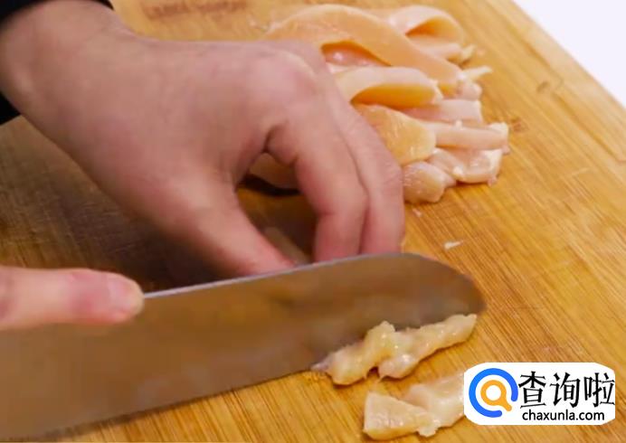 将鸡胸肉洗净,去掉杂碎部分,然后切丝切丁。