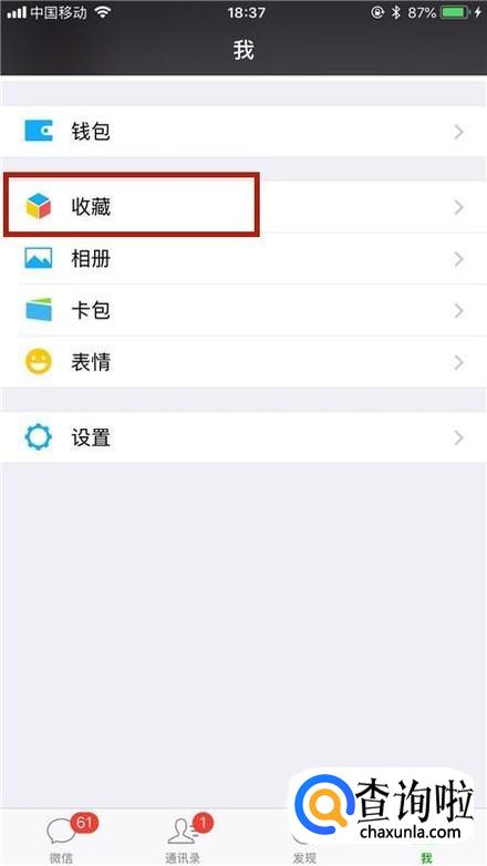 接着在微信中找到收藏并点击它,如下图所示。