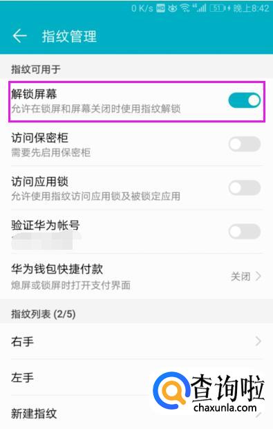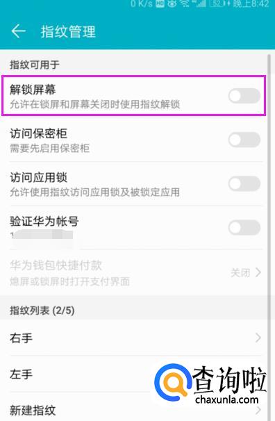 指纹的功能中【解锁屏幕】功能就没开,如图。