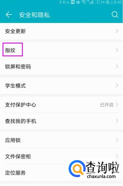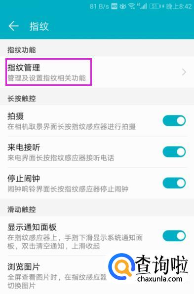 看到【指纹管理】,指开下它,如图。
